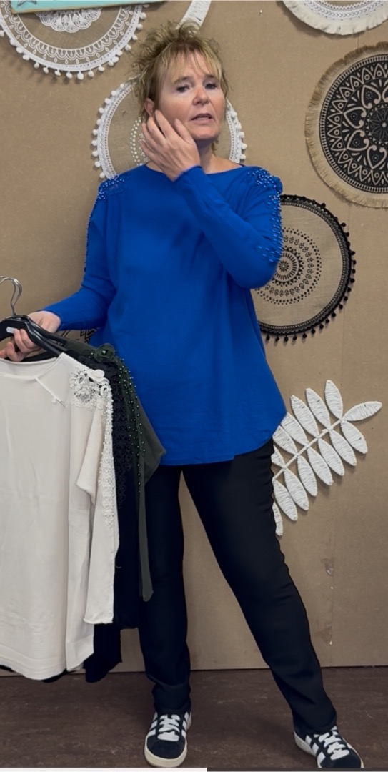 Hoe mooi is dit model! De parels op de mouwen geven een chique touch, terwijl de zachte stof heerlijk comfortabel zit ✨