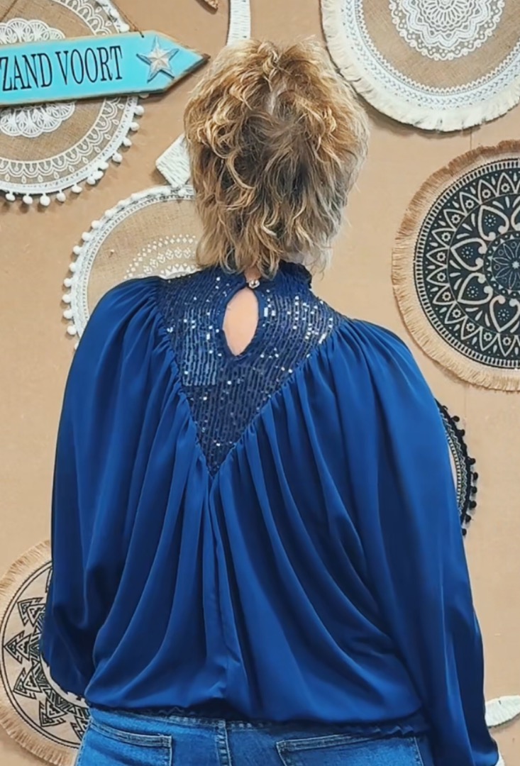 Luchtige stof, soepel vallend model en schitterend pailletten detail voor- én achteraan ✨