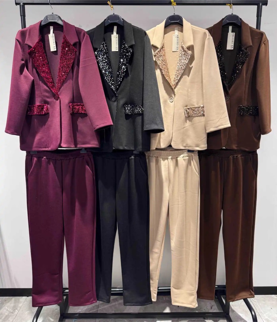 Mooie colbert afgezet met lovertjes op rever, set is te dragen van