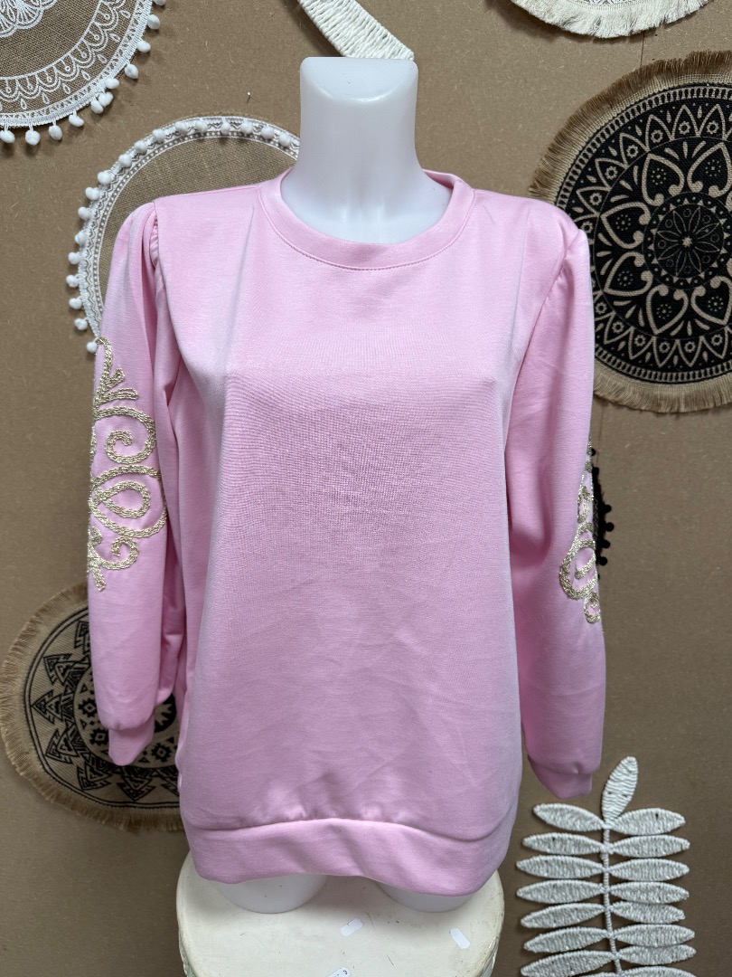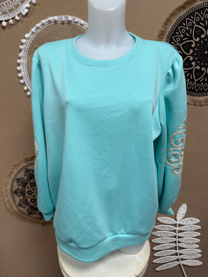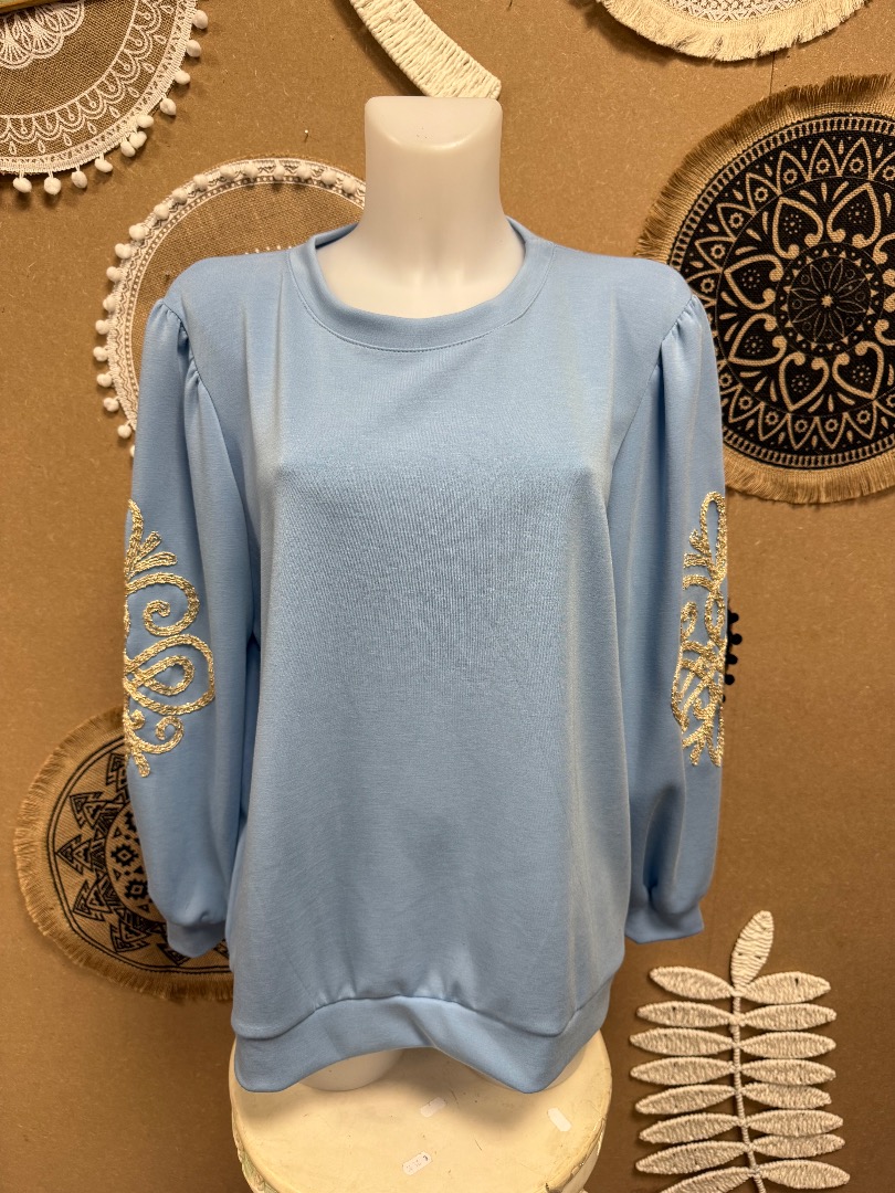 Deze sweater heeft een mooie pasvorm en een subtiele, chique opdruk op de mouwen.