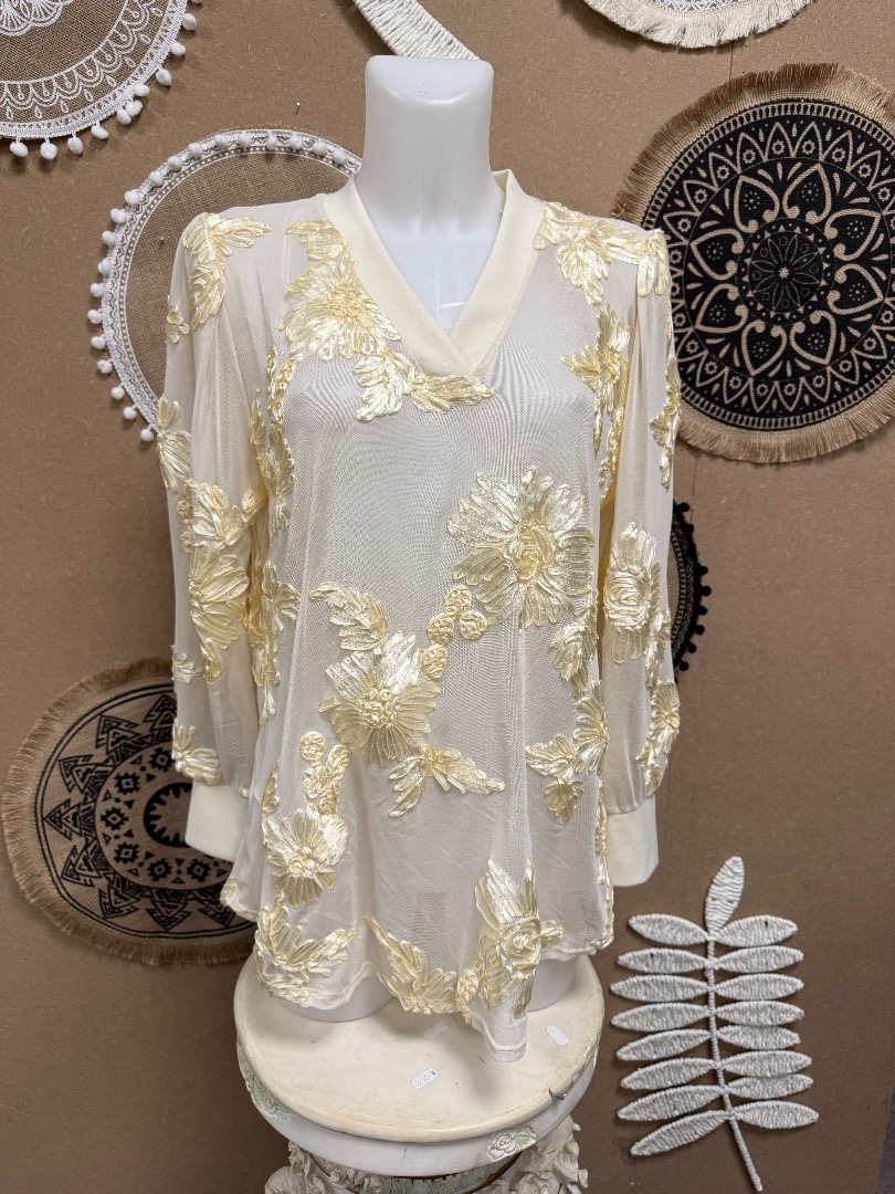 Gemaakt van een luchtige stof met een chique bloemen opdruk en een mooie V-hals.