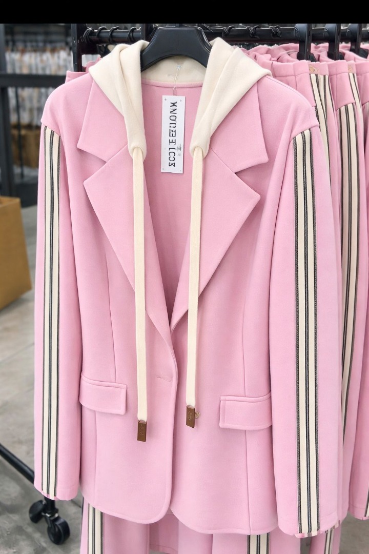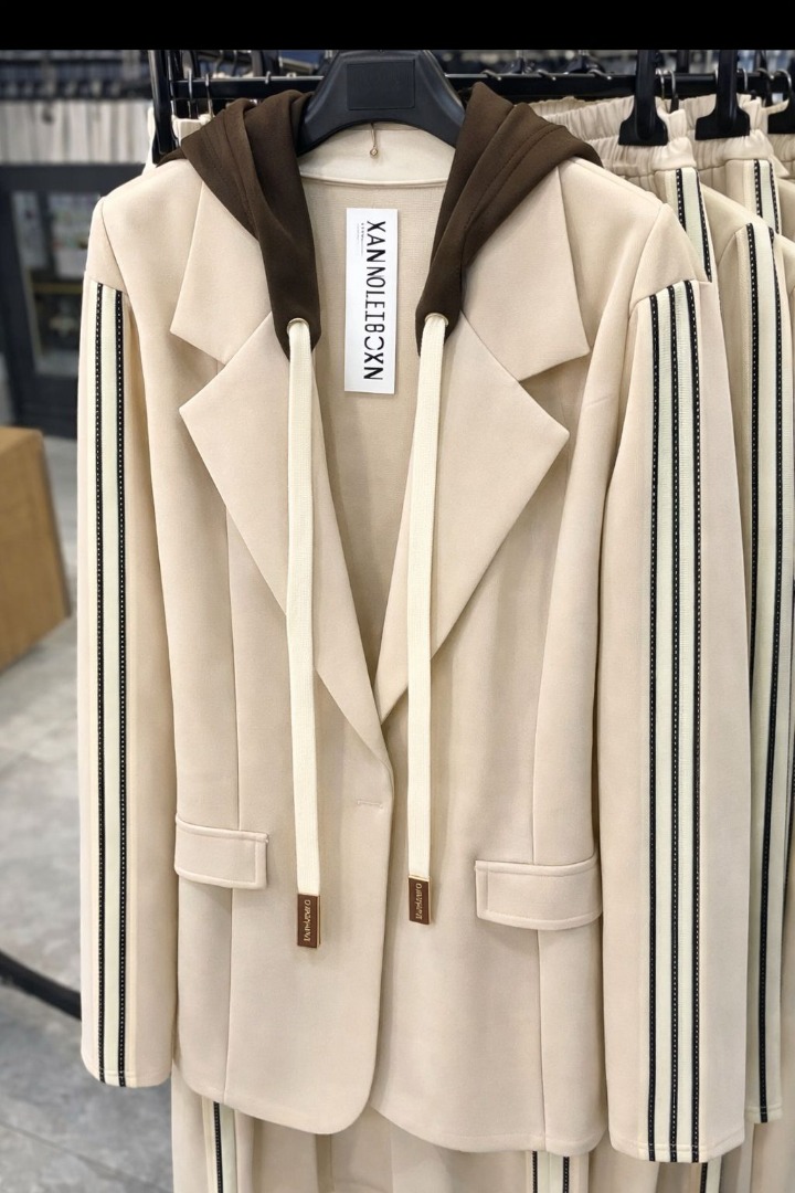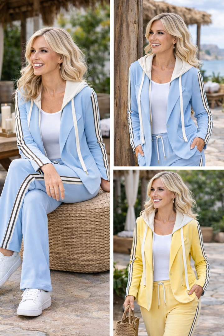 comfy pak met capuchon is er eentje waar je in wilt wonen! Gemaakt van een zachte, comfortabele stof en afgewerkt met sportieve biesdetails langs de zijkant. De capuchon geeft het pak een trendy en casual look, perfect voor elke dag.