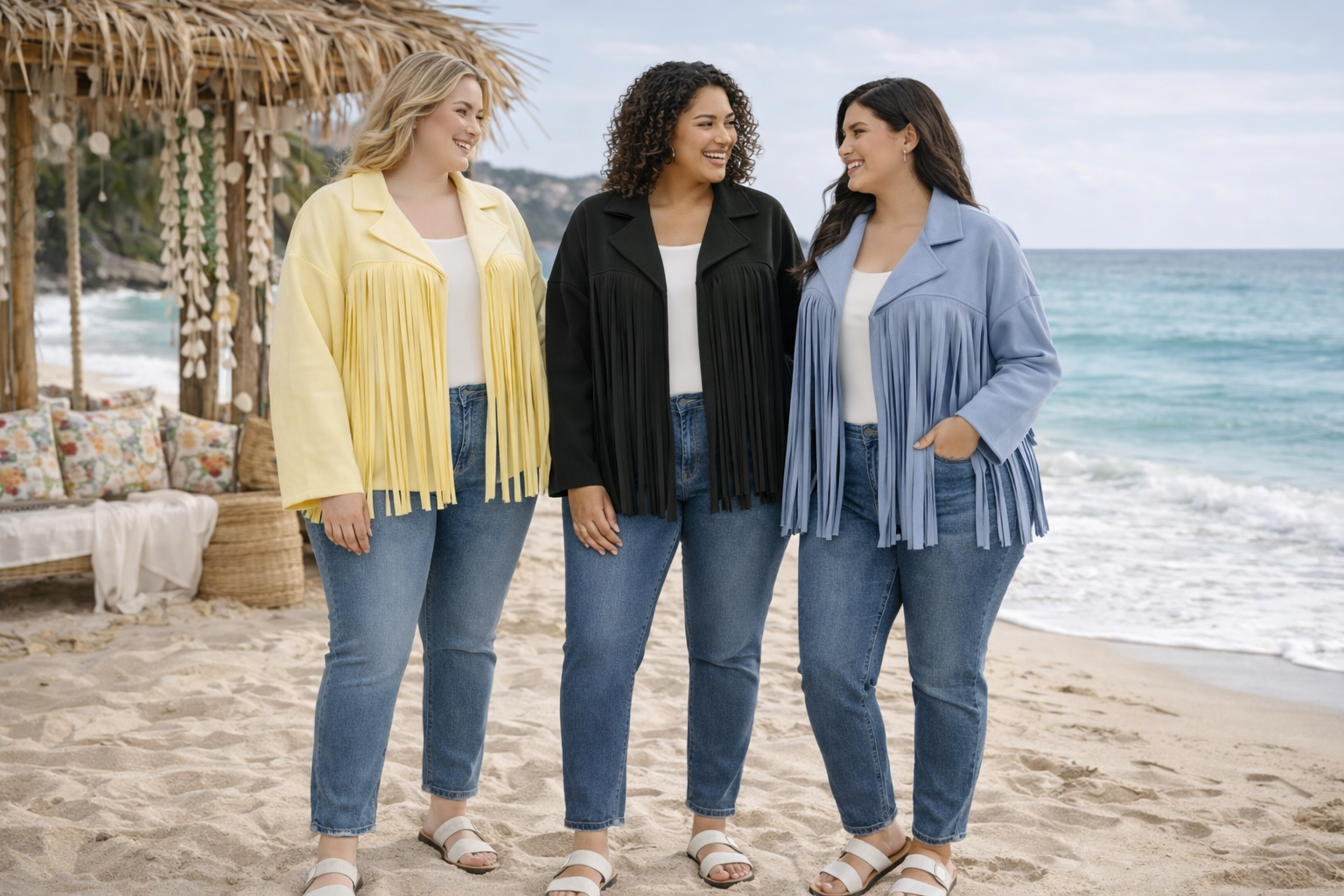 De franjes geven een speelse, boho vibe en het jasje valt heerlijk soepel. Perfect voor nu én straks het voorjaar in!